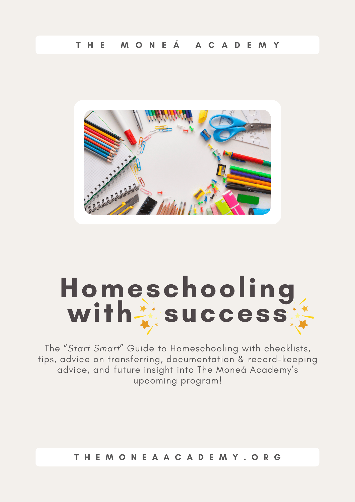 The Moneá Academy's Homeschooling with Success Guide is all about helping families start smart with homeschooling. Whether you’re just beginning or seeking a more effective way to organize and support your homeschooling journey, we provide the tools, tips, and encouragement you need to homeschool with confidence.